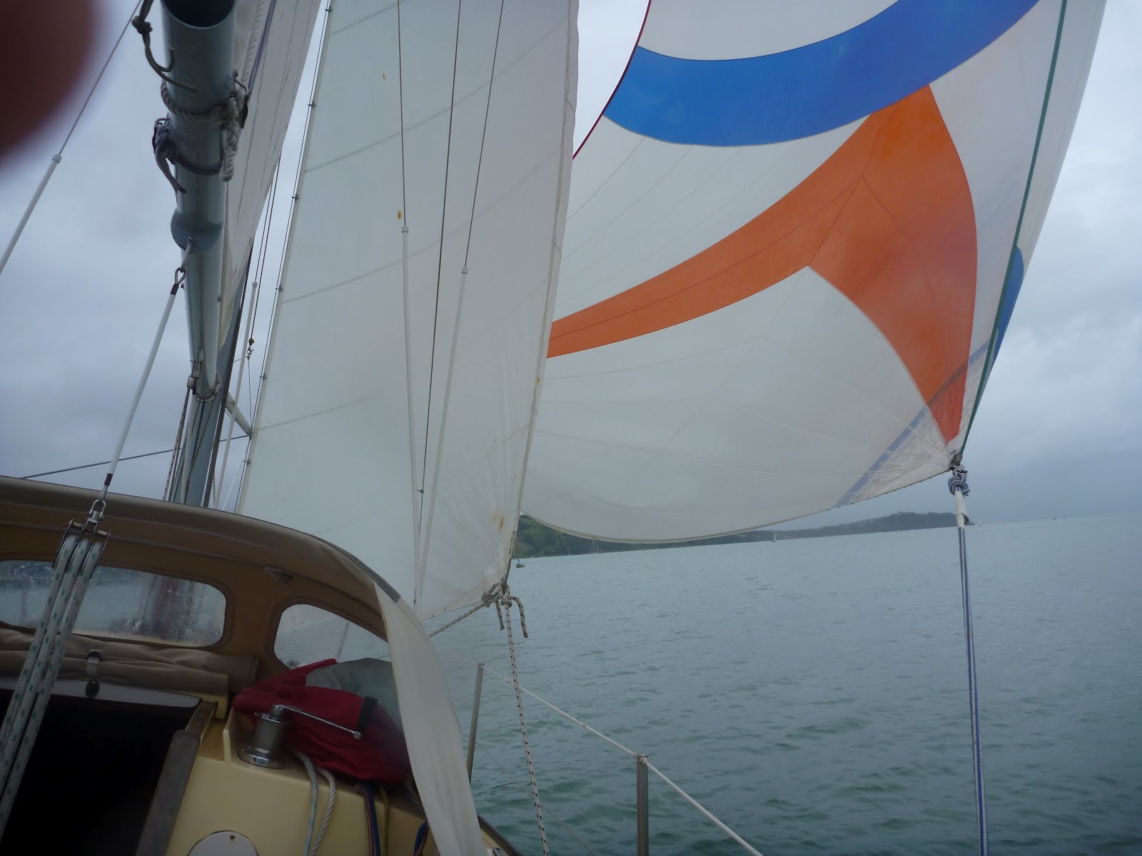 In this situation we weren't trying to use the spinnaker as another jib, we had just changed course and found the wind to close, but as it was only a light wind we were able to hang on for a short distance until we got to the next channel marker and were able to change course again.