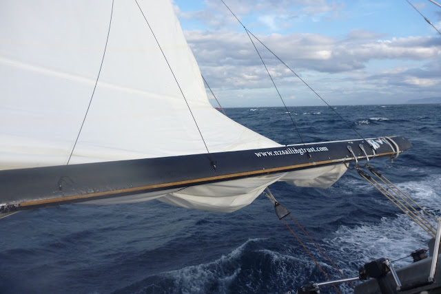 Off we go storming along with an inner stays'l set under the roller furling jib.